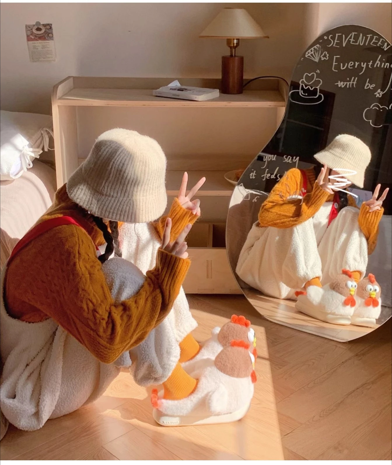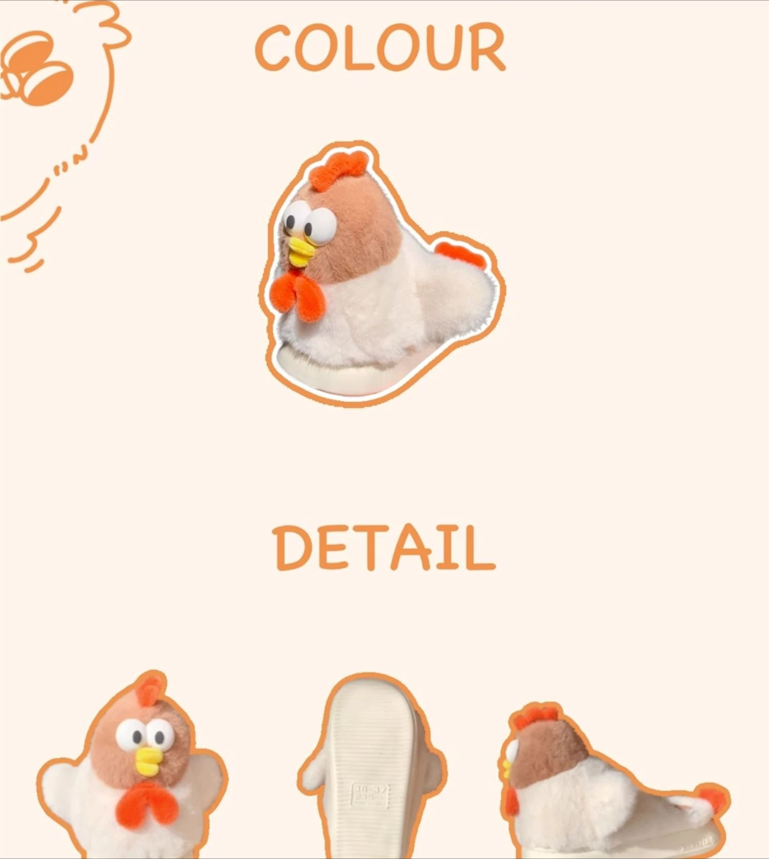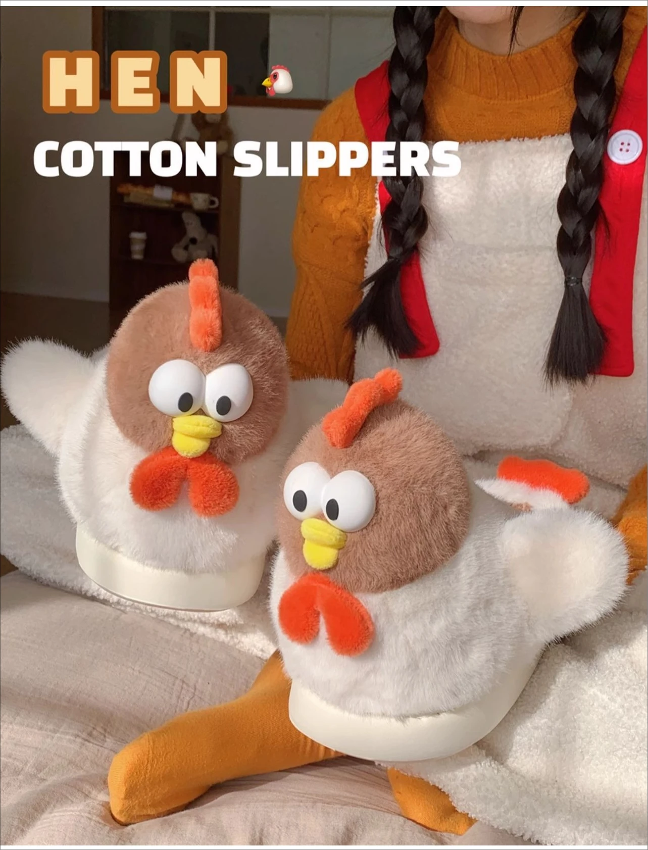 funny chicken style / warm faux fur / thick sole / Anti-slip